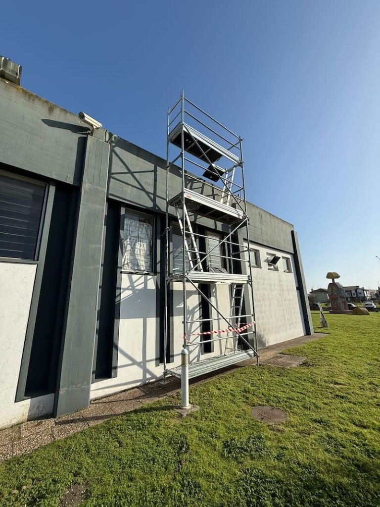 Além disso, os andaimes utilizados são equipamentos novos, o que assegura maior fiabilidade, durabilidade e desempenho em obra.